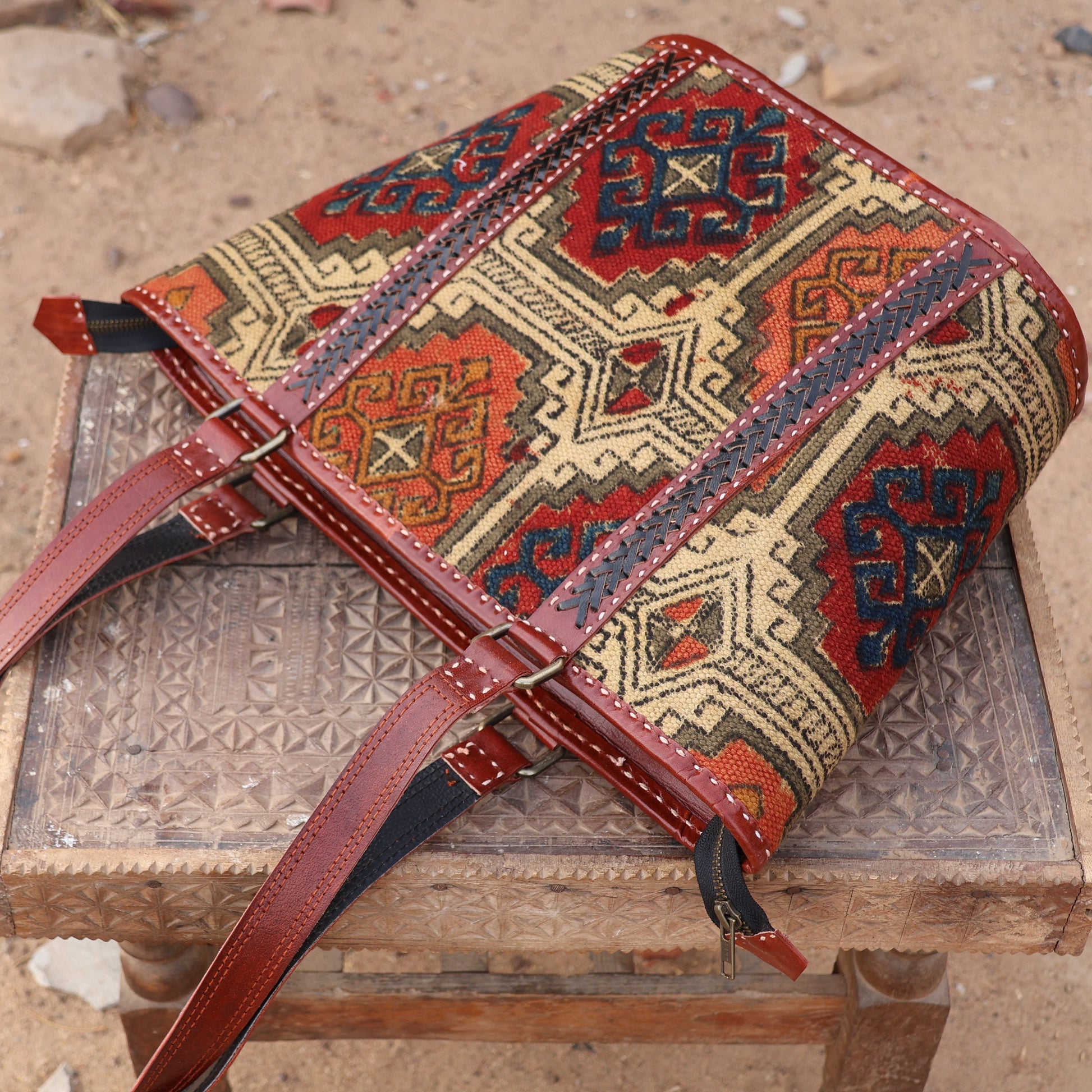 Ethnic Patterned Handbag| 100% Genuine Leather | Handwoven Stitch Design